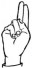 На ћирилици написано ТЕОДОР БИБЕР састоји се из 11 слова [?]. Исписано ћириличном једноручном азбуком за глувонеме: